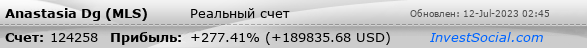 Текущие показатели торгового счета 124258 трейдера Anastasia Dg (MLS)