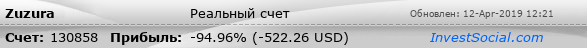 Текущие показатели торгового счета 130858 трейдера Zuzura