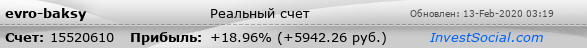 Текущие показатели торгового счета 15520610 трейдера evro-baksy