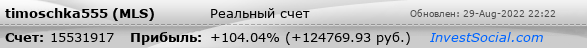 Текущие показатели торгового счета 15531917 трейдера timoschka555 (MLS)