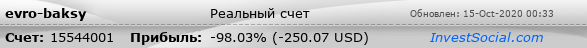 Текущие показатели торгового счета 15544001 трейдера evro-baksy
