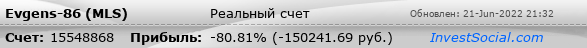 Текущие показатели торгового счета 15548868 трейдера Evgens-86 (MLS)