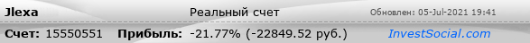 Текущие показатели торгового счета 15550551 трейдера Jlexa