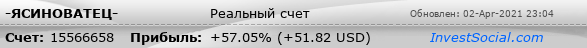 Текущие показатели торгового счета 15566658 трейдера -ЯСИНОВАТЕЦ-