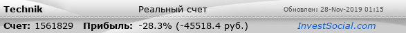 Текущие показатели торгового счета 1561829 трейдера Technik