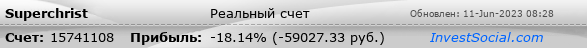 Текущие показатели торгового счета 15741108 трейдера Superchrist