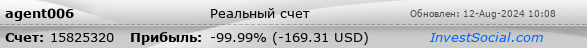 Текущие показатели торгового счета 15825320 трейдера agent006