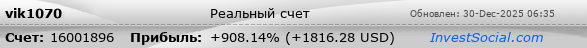 Текущие показатели торгового счета 16001896 трейдера vik1070