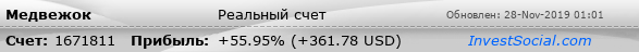 Текущие показатели торгового счета 1671811 трейдера Медвежок