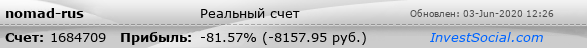 Текущие показатели торгового счета 1684709 трейдера nomad-rus