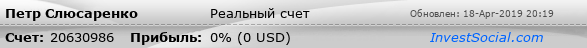 Текущие показатели торгового счета 20630986 трейдера Петр Слюсаренко