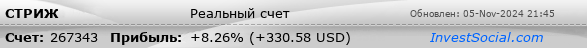 Текущие показатели торгового счета 267343 трейдера СТРИЖ