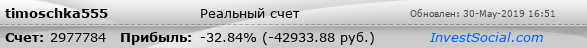 Текущие показатели торгового счета 2977784 трейдера timoschka555