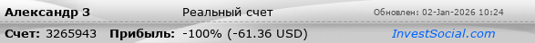 Текущие показатели торгового счета 3265943 трейдера Александр 3