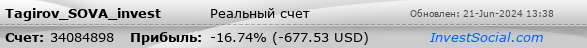 Текущие показатели торгового счета 34084898 трейдера Tagirov_SOVA_invest