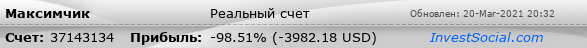 Текущие показатели торгового счета 37143134 трейдера Максимчик