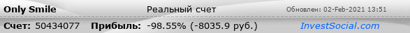 Текущие показатели торгового счета 50434077 трейдера Only Smile