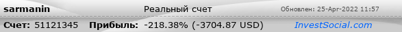 Текущие показатели торгового счета 51121345 трейдера sarmanin