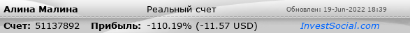 Текущие показатели торгового счета 51137892 трейдера Алина Малина