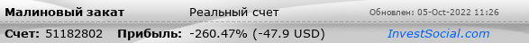 Текущие показатели торгового счета 51182802 трейдера Малиновый закат
