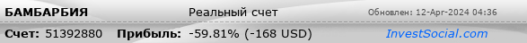 Текущие показатели торгового счета 51392880 трейдера БАМБАРБИЯ