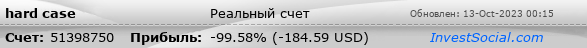 Текущие показатели торгового счета 51398750 трейдера hard case