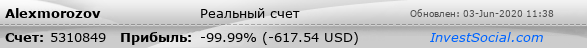 Текущие показатели торгового счета 5310849 трейдера Alexmorozov