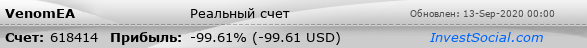Текущие показатели торгового счета 618414 трейдера VenomEA