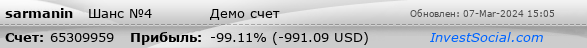 | Наибольшая прибыльная сделка, USD (время): | 26.64 (1ч 5м 46с.) |