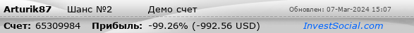| Наибольшая прибыльная сделка, USD (время): | 121.80 (12ч 34м) |