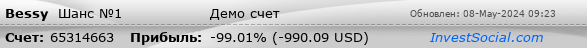 | Наибольшая прибыльная сделка, USD (время): | 320.00 (1ч 31м 4с.) |