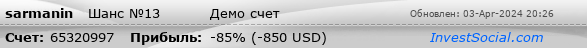 Прибыльные сделки (% от всех):0 (0.00%) Убыточные сделки (% от всех):0 (0.00%)
