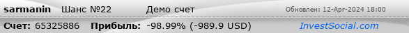 | Наибольшая прибыльная сделка, USD (время): | 630.00 (1ч 44м 24с.) |