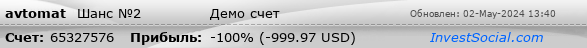 | Наибольшая прибыльная сделка, USD (время): | 151.61 (3ч 1м 16с.) |