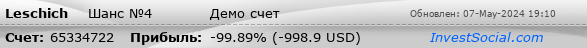 | Наибольшая прибыльная сделка, USD (время): | 232.00 (49м 55с.) |