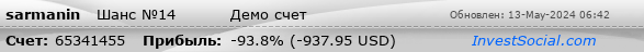 Наибольшая убыточная сделка, USD (время): | -370.29 (2д 4ч 54м 35с.) |
