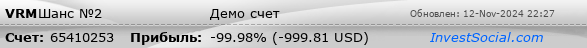| Наибольшая прибыльная сделка, USD (время): | 177.00 (10м 59с.) |