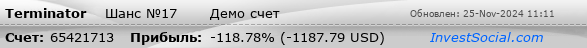 Наибольшая убыточная сделка, USD (время): | -411.65 (2д 4ч 52м 21с.) |