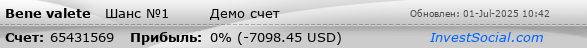 Текущие показатели торгового счета 65431569 трейдера Bene valete