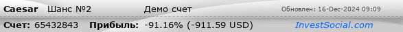 | Наибольшая прибыльная сделка, USD (время): | 227.52 (1ч 40м 22с.) |