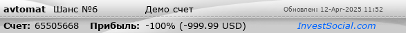Наибольшая убыточная сделка, USD (время): | -437.58 (4ч 34м 42с.) |