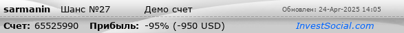 Наибольшая убыточная сделка, USD (время): | -950.00 (3ч 8м 12с.) |