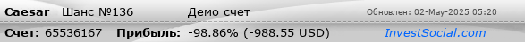 Наибольшая убыточная сделка, USD (время): | -741.40 (7ч 25м 39с.) |