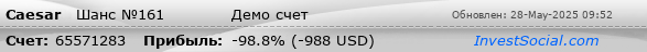 | Наибольшая прибыльная сделка, USD (время): | 179.00 (13ч 17м) |