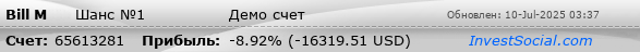 Текущие показатели торгового счета 65613281 трейдера Bill M
