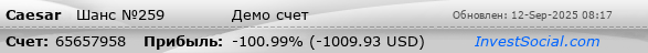| Наибольшая прибыльная сделка, USD (время): | 1,054.07 (23ч 4м 38с.) |