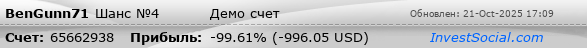 | Наибольшая прибыльная сделка, USD (время): | 57.57 (3ч 3м 30с.) |