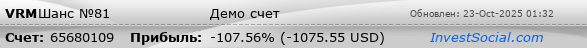| Наибольшая прибыльная сделка, USD (время): | 2,684.50 (4ч 21м 30с.) |