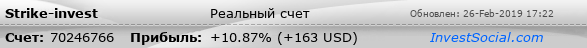 Текущие показатели торгового счета 70246766 трейдера Strike-invest