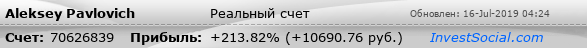 Текущие показатели торгового счета 70626839 трейдера Aleksey Pavlovich